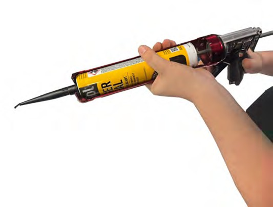 - Remove cap from sealant and install into generic 310ml applicable cartridge applicator gun.